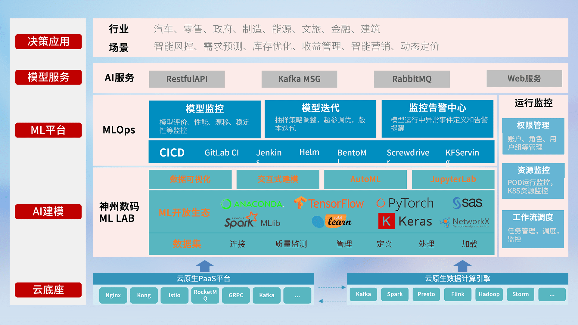 数据+模型双引擎驱动,,,面向智能服务场景,,,,快速灵活利用AI技术,,,支持业务决策,,,,助力企业智能化转型破局。。